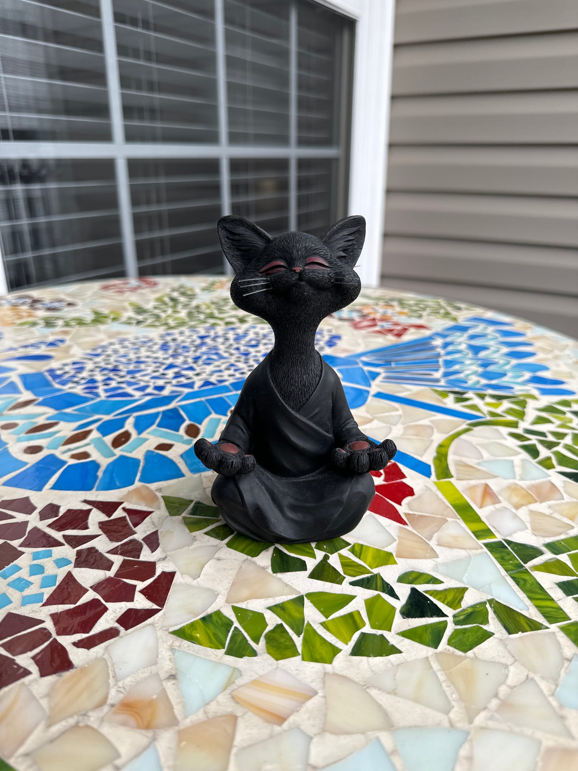 When I picked Karma Cat up and moved him to take his picture I swear that I felt some type of energy from him. I don't know the material he is made from. I seem to be more in tune with everything around me since I started meditating with crystals. I don't try to rationalize this, I relate to it like The Force from Star Wars.